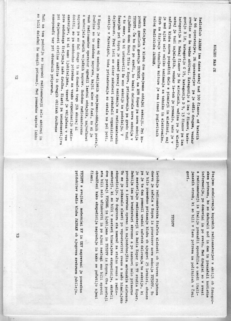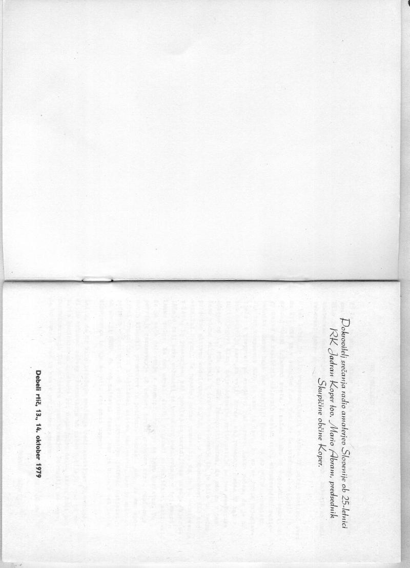 25 let je minilo odkar je bila vzpostavljena v Kopru prva radioamaterska zveza in to iz nove ustanovljenega radio kluba Jadran. Bilo je to v času, ko je bil Koper še STO, v času, ko je radioamatersko delovanje bilo še v posebnih razmerah, katerih se naši veterani dobro spominjajo.