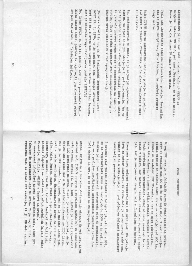 Nekaj dni pozneje je bil ta rezultat presežen in sicer tocno 26.7.1979, ko je bila vzpostavljena zveza na razdaljo 415 km. To predstavlja nov jugoslovanski rekord. Ta je bil dosežen z malega hribcka Piložtak pri Pazinu na višini 480 m na lokatorju GF 60 J.